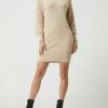Das Midikleid von BOSS ist aus strapazierfähigem Material gefertigt und gerade geschnitten. Es zeigt sich mit langen Ärmeln, tiefem Rundhalsausschnitt und Schlitz auf der Vorderseite.