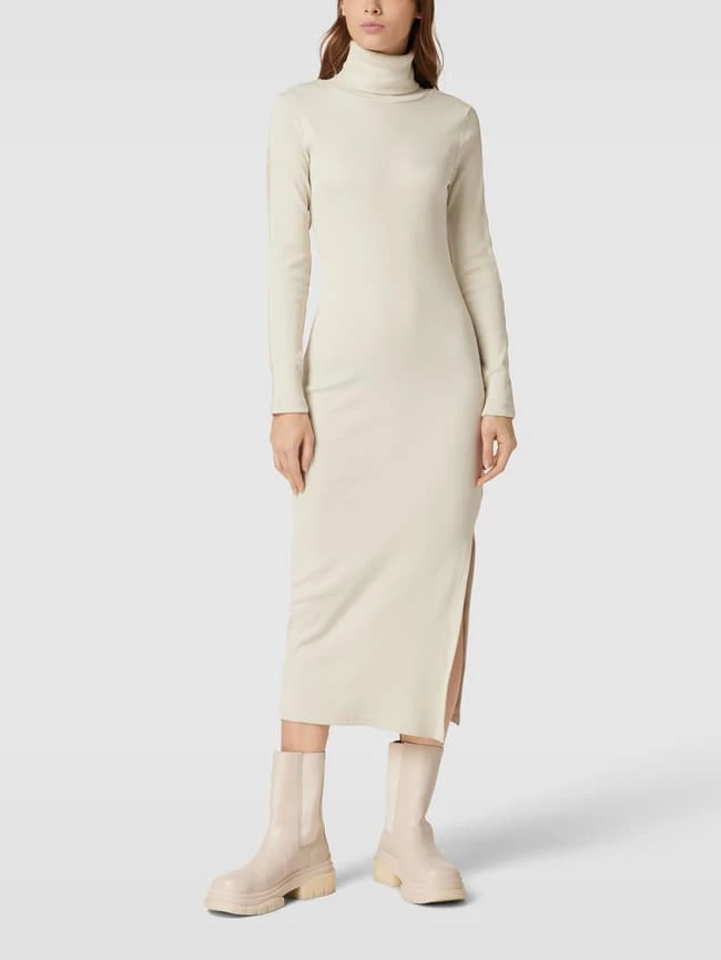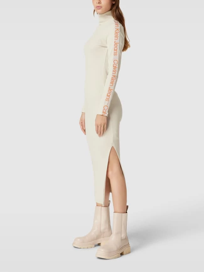 Calvin Klein Jeans Midikleid Mit Geripptem Rollkragen – Sand