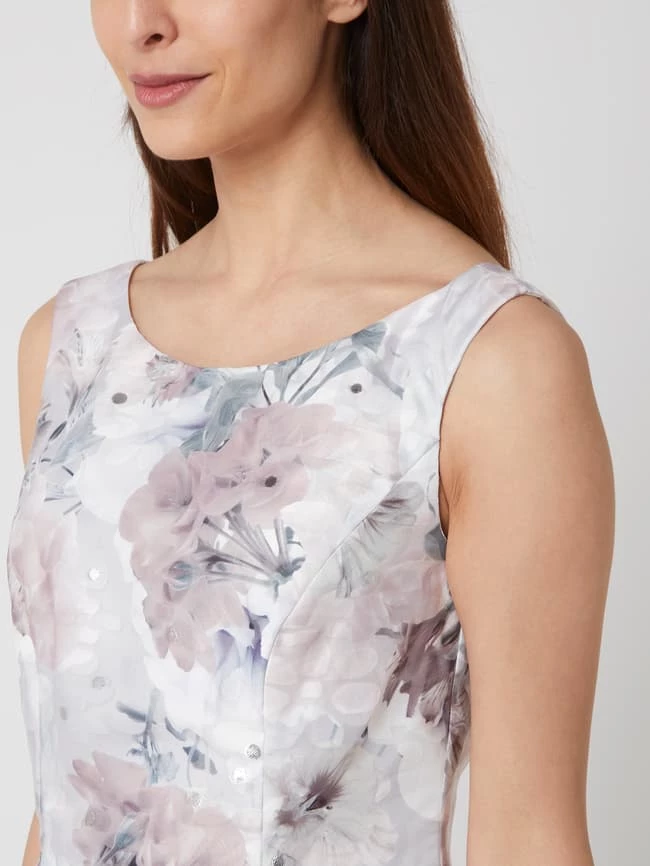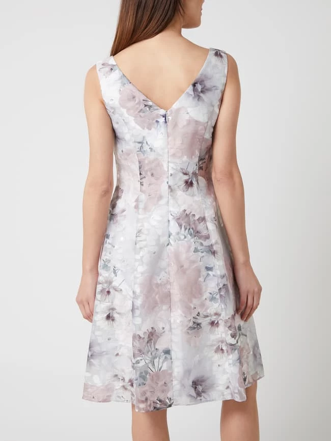 Das Cocktailkleid von Christian Berg Cocktail ist aus Brokat gefertigt. Es zeigt sich in taillierter Passform mit floralem Muster, Effektgarn und Kellerfalten.