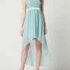 Das Cocktailkleid von Christian Berg Cocktail ist aus Tüll gefertigt und tailliert geschnitten. Es zeigt sich mit Zierstreifen, ausgestelltem Rockteil und Nahtreißverschluss auf der Rückseite.