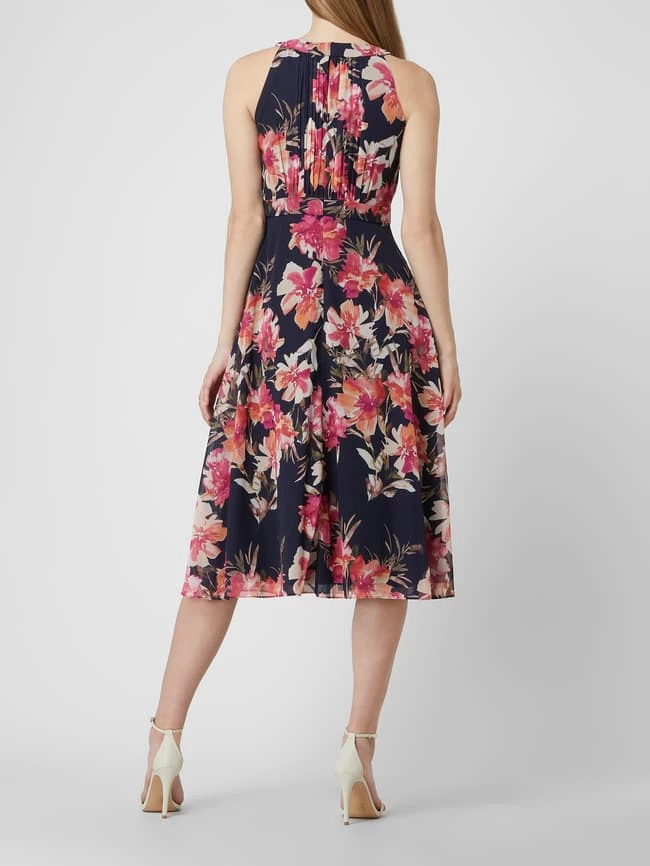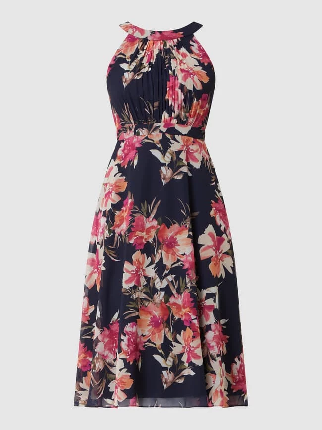 Das Cocktailkleid von Christian Berg Cocktail ist aus leichtem Material gefertigt und tailliert geschnitten. Es kommt mit floralem Muster, amerikanischem Ausschnitt und Plisseefalten.
