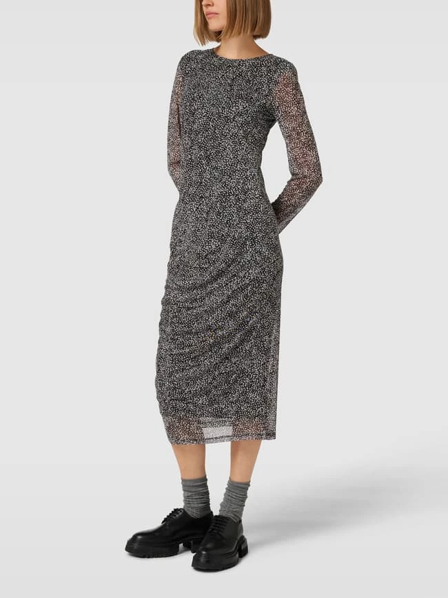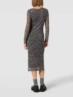 Comma Midikleid Mit Rundhalsausschnitt – Schwarz