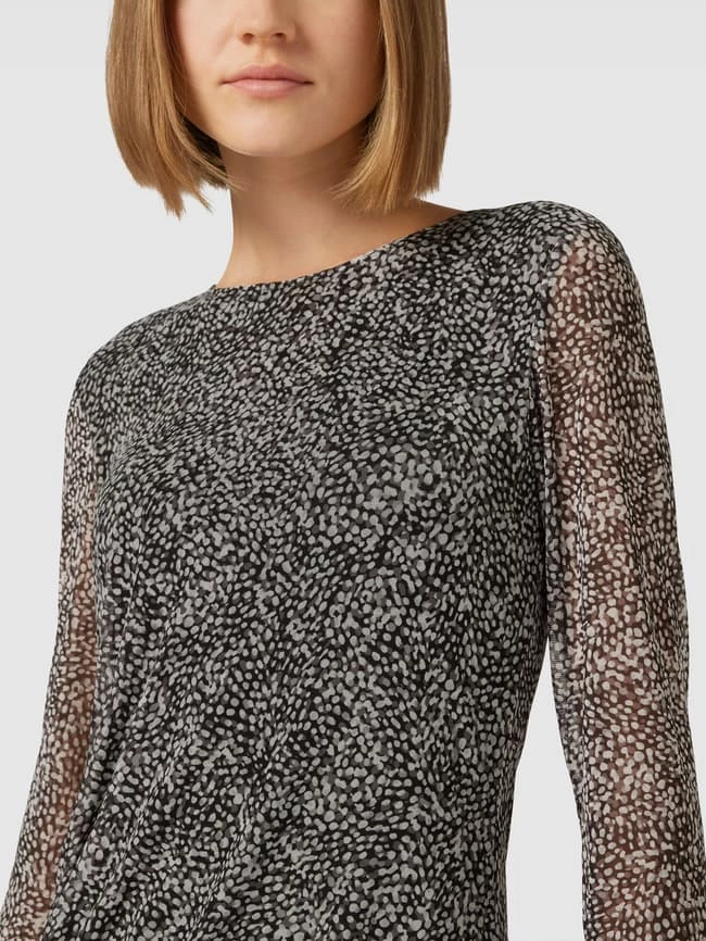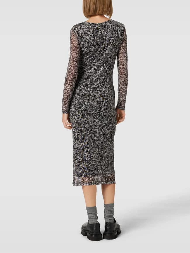 Das Midikleid von comma ist aus einem elastischen Material-Mix gefertigt und körpernah geschnitten. Es zeigt sich in semitransparentem Design mit floralem Allover-Muster.