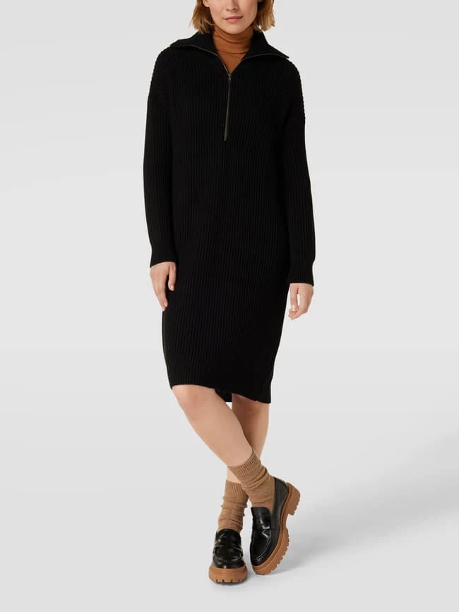 Das Midikleid von DRYKORN ist aus einem Material-Mix mit Woll-Anteil gefertigt und gerade geschnitten. Es zeigt sich in Strick-Optik mit kurzem Reißverschluss und Stehkragen.