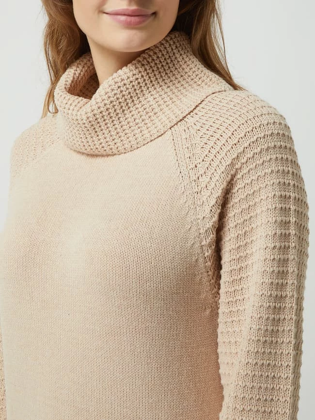 Das Strickkleid von edc by Esprit ist aus einer Bio-Baumwollmischung gefertigt und leicht ausgestellt geschnitten. Es kommt mit Rollkragen, Raglanärmeln und gerippten Bundabschlüssen.