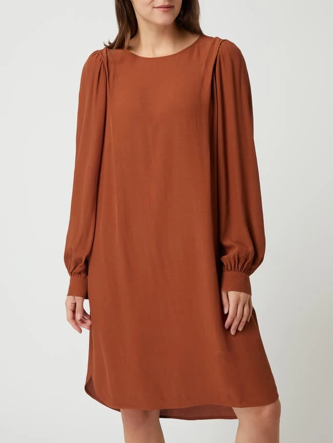 Das Kleid von Esprit Collection ist aus reiner Viskose gefertigt und ausgestellt geschnitten. Es kommt mit Rundhalsausschnitt, Ballonärmeln und gelegten Falten.