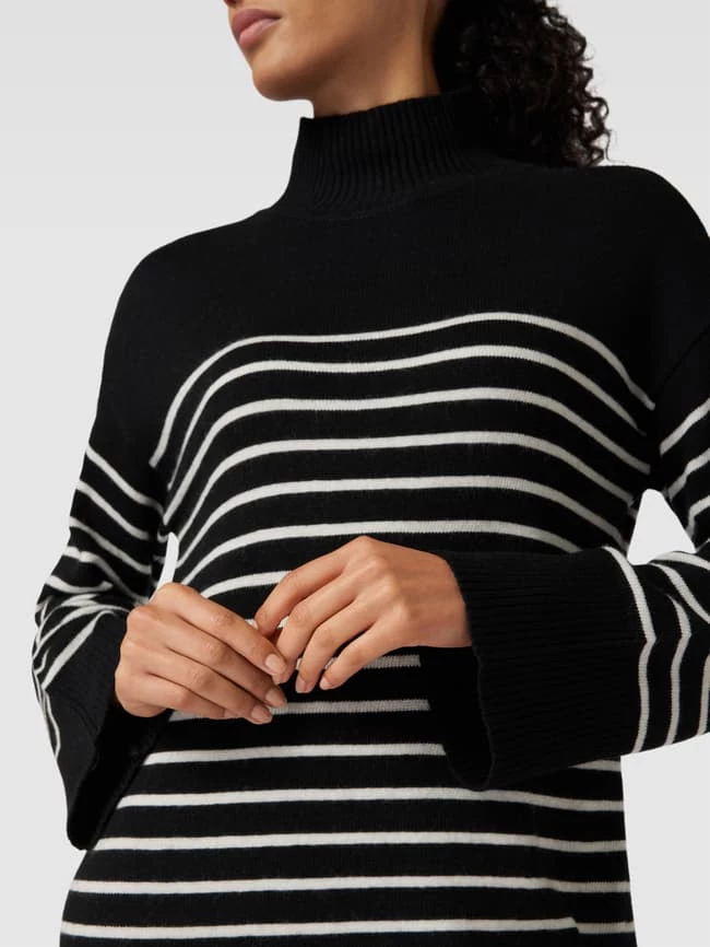 Das Sweatkleid von Esprit ist aus einem Woll-Mix mit Viskose-Anteil gefertigt und gerade geschnitten. Es zeigt sich mit Streifenmuster, Rollkragen und gerippten Abschlüssen.