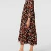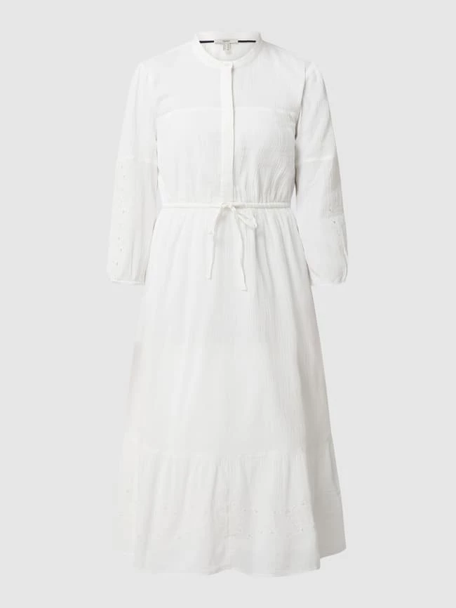 Das Midikleid von Esprit ist aus reiner Baumwolle gefertigt und tailliert geschnitten. Es zeigt sich mit Stehkragen, 3/4-Arm und Spitze.