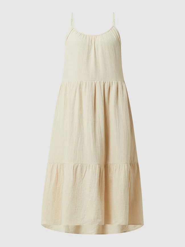 Das Kleid von Jake*s Casual ist aus reiner Baumwolle gefertigt und ausgestellt geschnitten. Es kommt im Stufen-Look mit Rundhalsausschnitt, verstellbaren Trägern und Eingrifftaschen.