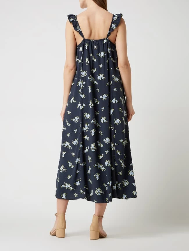 Das Kleid von Jake*s Casual ist aus reiner Viskose gefertigt. Es kommt in ausgestellter Passform mit floralem Muster, V-Ausschnitt und seitlichen Eingrifftaschen.