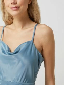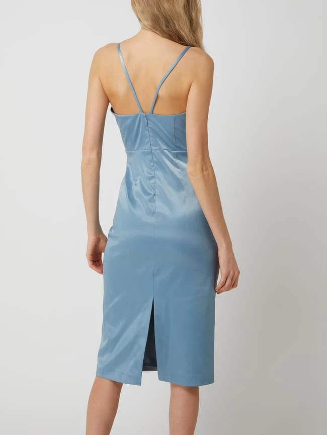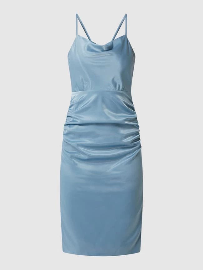 Das Cocktailkleid von Jake*s Cocktail ist aus Taft gefertigt. Es zeigt sich in eng anliegender Passform mit Wasserfall-Ausschnitt, schmalen Trägern und Raffungen.