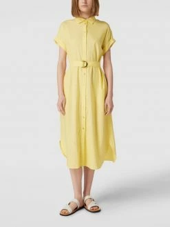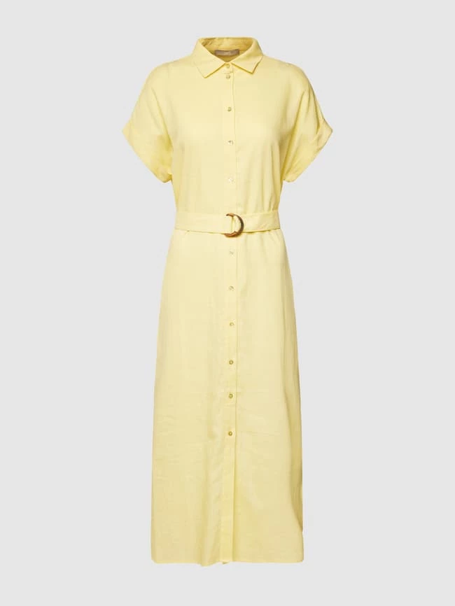 Jake*s Collection Hemdblusenkleid Mit Stoffgürtel – Hellgelb
