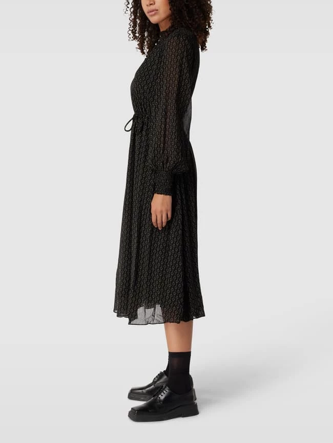 Das Kleid von Jake*s Collection ist aus einem strapazierfähigen Material-Mix gefertigt und tailliert geschnitten. Es zeigt sich mit Allover-Muster und Taillenband.