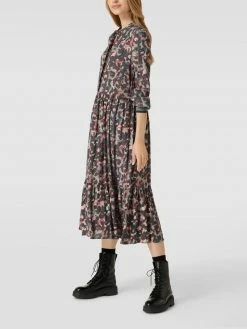 Das Midikleid von Jake*s Collection ist aus reiner Viskose gefertigt und gerade geschnitten. Es zeigt sich mit Allover-Muster, Maokragen und verdeckter Knopfleiste.