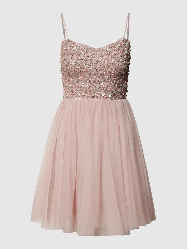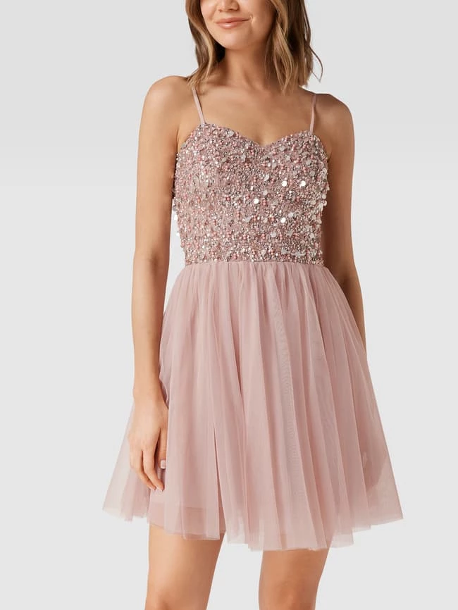 Das Cocktailkleid von Lace & Beads ist aus strapazierfähigem Material gefertigt und tailliert geschnitten. Es kommt in Minilänge, mit Paillettenbesatz, ausgestelltem Rockteil aus Tüll und weitenverstellbaren Spaghettiträgern.
