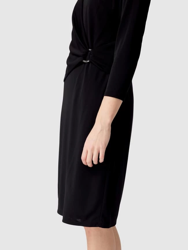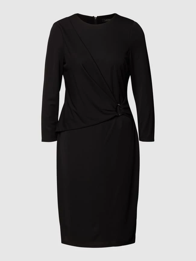 Das knielange Kleid von Lauren Ralph Lauren ist aus einem Material-Mix mit Stretch-Anteil gefertigt und tailliert geschnitten. Es kommt in Wickel-Optik mit Zier-Applikation und Rundhalsausschnitt.