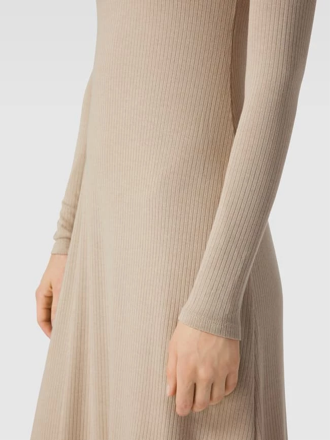 Das Midikleid von MANGO ist aus einem Material-Mix mit Viskose-Anteil gefertigt und tailliert geschnitten. Es zeigt sich in Ripp-Optik mit U-Ausschnitt.