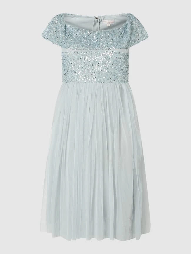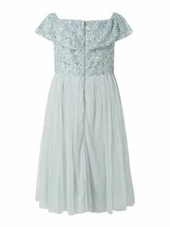 Das Cocktailkleid von Maya Deluxe Curve ist aus Tüll gefertigt und tailliert geschnitten. Es zeigt sich im Off Shoulder Look mit Pailletten, ausgestelltem Rockteil und Nahtreißverschluss auf der Rückseite.