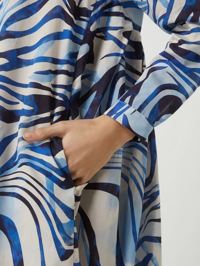 Das Kleid von MILANO ITALY ist aus reiner Baumwolle gefertigt und ausgestellt geschnitten. Es kommt mit Allover-Muster, Tunikakragen und Eingrifftaschen.