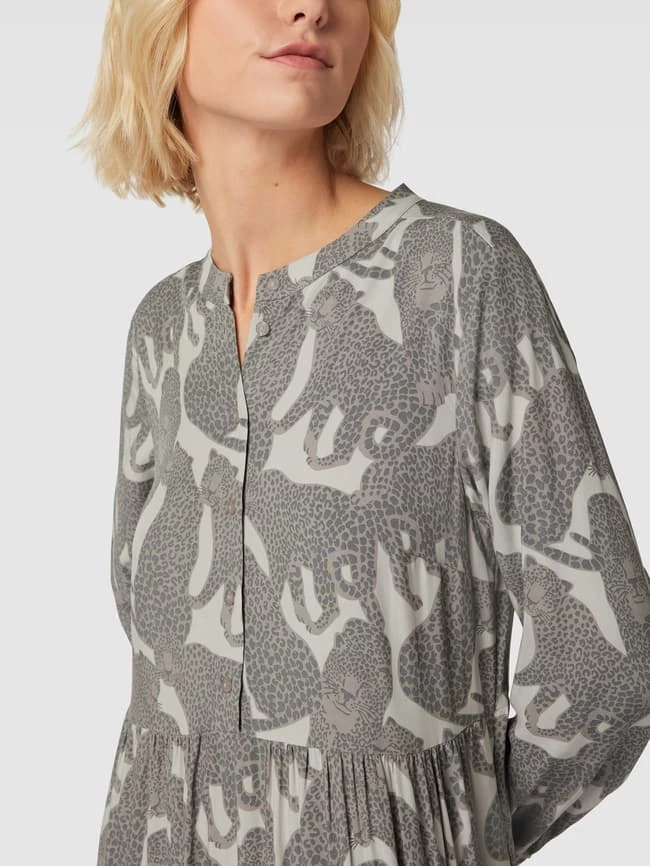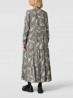 Das Maxikleid von MILANO ITALY ist aus reiner Viskose gefertigt und locker geschnitten. Es zeigt sich im Stufen-Look mit Allover-Muster und kurzer Knopfleiste.