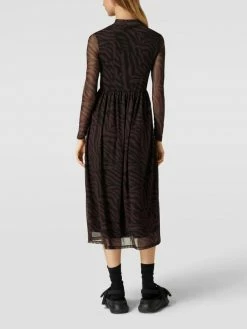NA-KD Midikleid Mit Stehkragen Modell ‘Longsleeve Mesh Dress’ – Mittelbraun