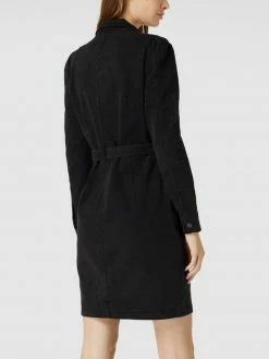 Das Kleid von ONLY ist aus einem Baumwoll-Mix mit Stretch-Anteil gefertigt und tailliert geschnitten. Es zeigt sich mit Umlegekragen, durchgehendem Zweiwege-Reißverschluss sowie Taillenband.