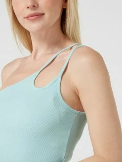 Das Minikleid von ONLY ist aus einem Baumwoll-Elasthan-Mix gefertigt. Es zeigt sich in eng anliegender Passform mit Rippenstruktur und gekreuzten Riemen.