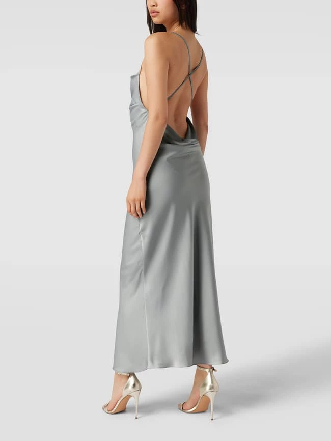 Paradi Knielanges Cocktailkleid Mit Wasserfall-Ausschnitt – Silber
