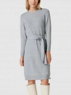 Pieces Knielanges Kleid In Strick-Optik Modell ‘Cava’ – Hellgrau Meliert