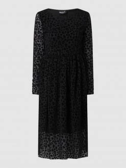 Das Midikleid von PIECES ist aus Mesh gefertigt und tailliert geschnitten. Es kommt mit Ausbrenner-Effekt, langen Ärmeln und ausgestelltem Rockteil.