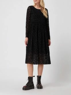Das Midikleid von PIECES ist aus Mesh gefertigt und tailliert geschnitten. Es kommt mit Ausbrenner-Effekt, langen Ärmeln und ausgestelltem Rockteil.