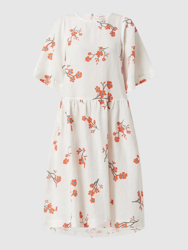 Das Kleid von Seidensticker ist aus reinem Leinen gefertigt und tailliert geschnitten. Es kommt mit floralem Muster, ausgestelltem Rockteil und geknöpftem Schlüsselloch-Ausschnitt auf der Rückseite.
