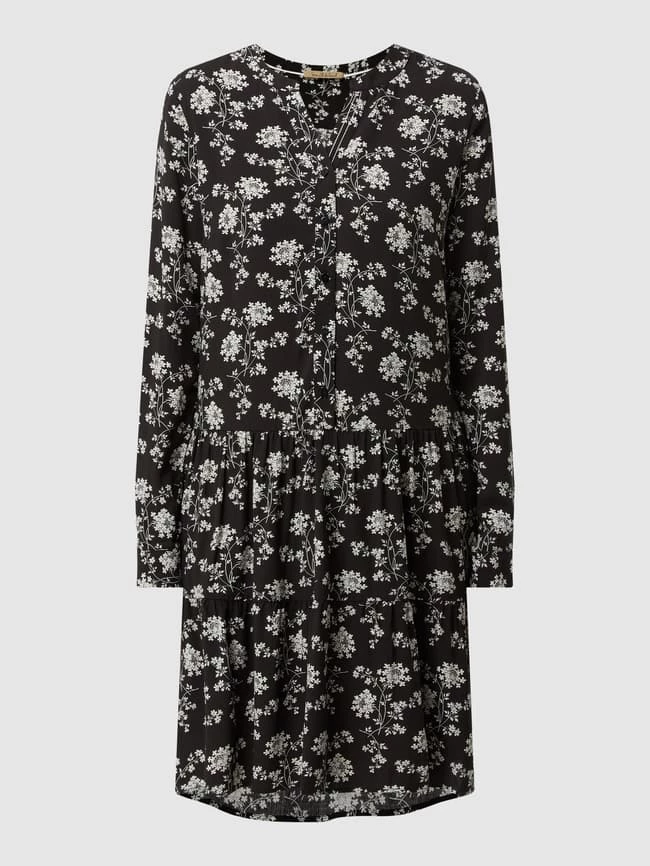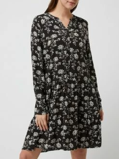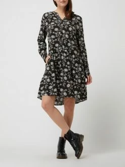 Das Kleid von Smith & Soul ist aus reiner Viskose gefertigt und leicht ausgestellt geschnitten. Es zeigt sich mit Allover-Muster, kurzer Knopfleiste und Raffungen.