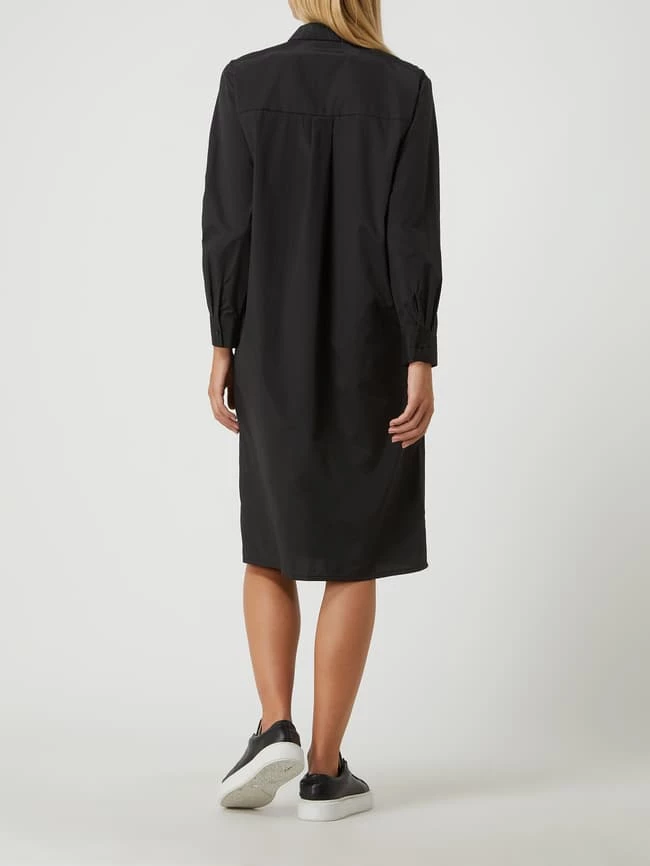 Das Blusenkleid von soyaconcept ist aus recyceltem Polyester und Bio-Baumwolle gefertigt. Es kommt in ausgestellter Passform mit Umlegekragen, Knopfleiste und Eingrifftaschen.