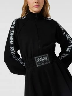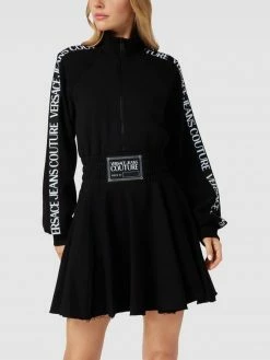 Das Kleid von Versace Jeans Couture ist aus einem Baumwoll-Mix mit Stretch-Anteil gefertigt und tailliert geschnitten. Es zeigt sich mit Label-Patch sowie geripptem Stehkragen und kurzem Reißverschluss.